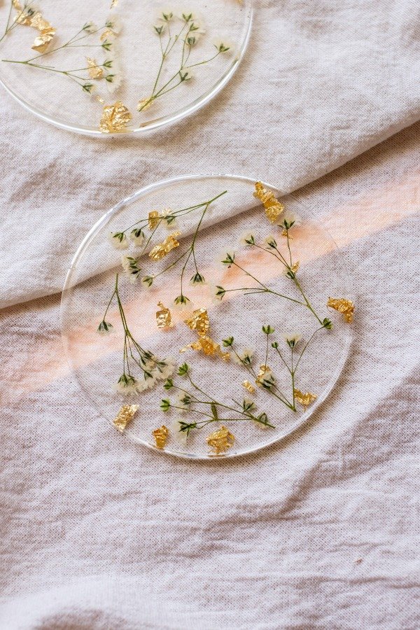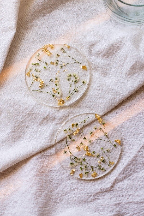 Posavasos de 8cm de diámetro realizados con resina y flores naturales.
