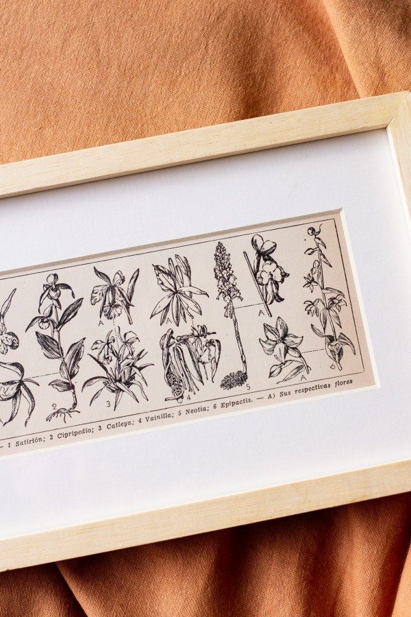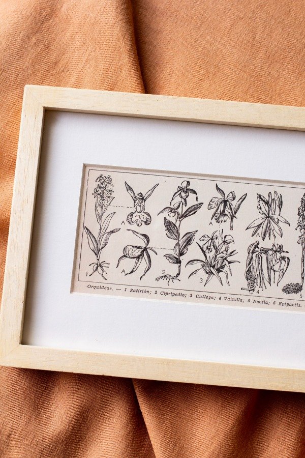 Pequeña lámina original de enciclopedia argentina del año 1956 enmarcada artesanalmente en madera marupá y paspartout.